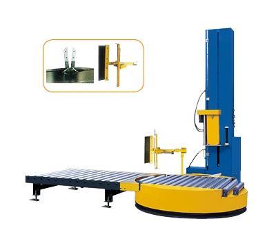 本机是专业为适应流水线作业而要求而设计的缠绕包装机械.其主要特点是在普通托盘机的基础上增加了自动上膜,断膜,抚膜的功能,并可以根据用户情况配送前后输送线,实现货物的自动进货,自动包装、自动输出等全自动无人化操作.减少人力成本,提高工作效率。非常适合现代化企业的自动化包装的需要。